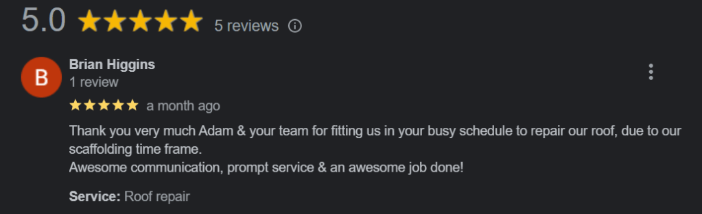 Would definitely recommend South Dublin Home Improvements. From start to finish on my vast roofing repairs required Adam & his crew were extremely professional, efficient & courteous. Explained exactly what was required & kept me updated throughout the works process. Work was completed in a timely manor & clean up was excellent. Great job & thank you